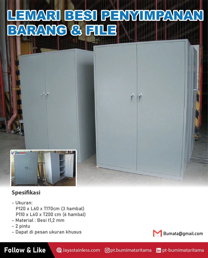 Cabinet lemari stainless dan besi adalah solusi praktis untuk kebutuhan penyimpanan Anda. Dengan daya tahan, estetika, dan fungsionalitasnya, lemari ini dapat digunakan di berbagai lingkungan, baik rumah, kantor, maupun industri. Pilihlah bahan dan desain yang sesuai dengan kebutuhan untuk mendapatkan manfaat maksimal. Dengan perawatan yang tepat, cabinet ini dapat bertahan dalam kondisi terbaik selama bertahun-tahun.