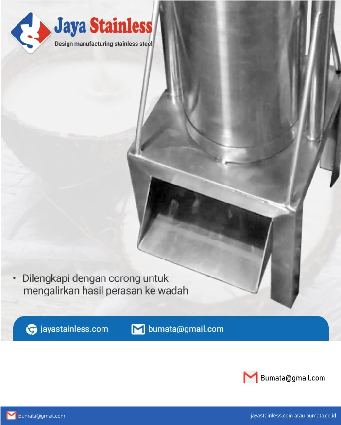Terbuat dari stainless steel atau bahan food grade lainnya yang tahan karat, higienis, dan aman untuk kontak dengan makanan.