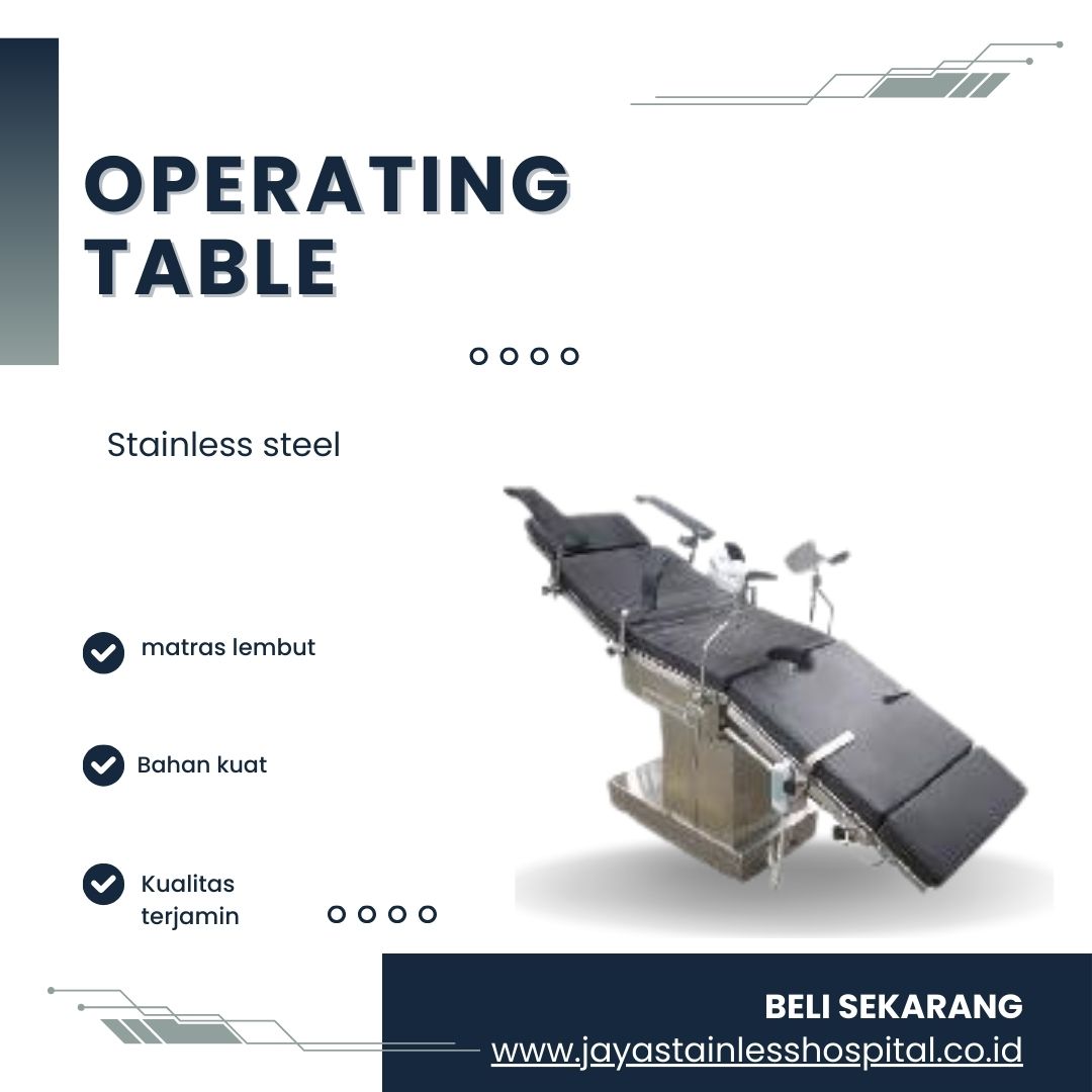 • Sterilisasi Mudah: Material yang digunakan pada meja operasi ini mudah dibersihkan dan disterilkan, sehingga memenuhi standar kebersihan di ruang operasi.