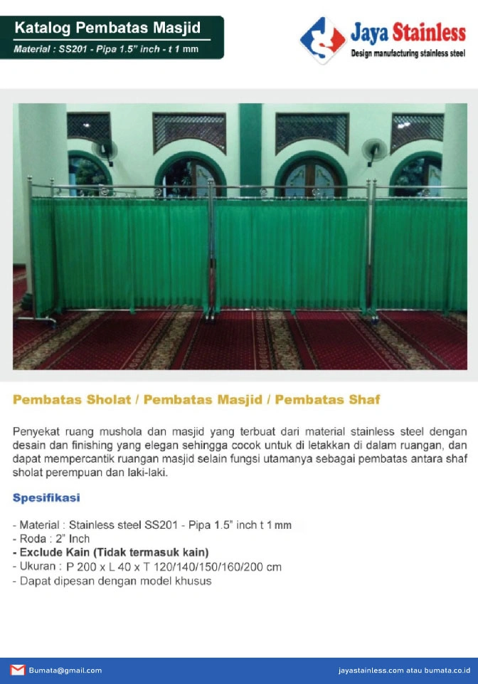 Penyekat Ruang Stainless (Pembatas Masjid) , Stainless steel memiliki kualitas yang berbeda pastikan anda mendapatkan produk “Penyekat Ruang / pembatas ruang masjid dan mushola” dengan harga dan kualitas terbaik hanya di jayastainles.com.