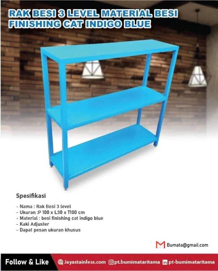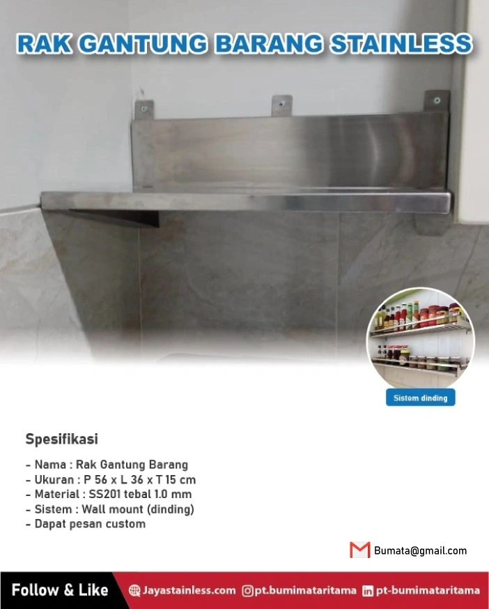 Material stainless steel juga terkenal mudah dibersihkan dan higienis, menjadikannya pilihan utama untuk menyimpan bahan makanan, produk kesehatan, atau perlengkapan yang memerlukan kebersihan tinggi. Meski harganya cenderung lebih mahal dibandingkan dengan rak besi biasa, daya tahan dan umur panjangnya membuat rak stainless menjadi investasi yang bijak. Selain itu, perawatannya yang mudah menambah nilai lebih bagi pengguna yang mencari solusi penyimpanan praktis namun berkualitas.
