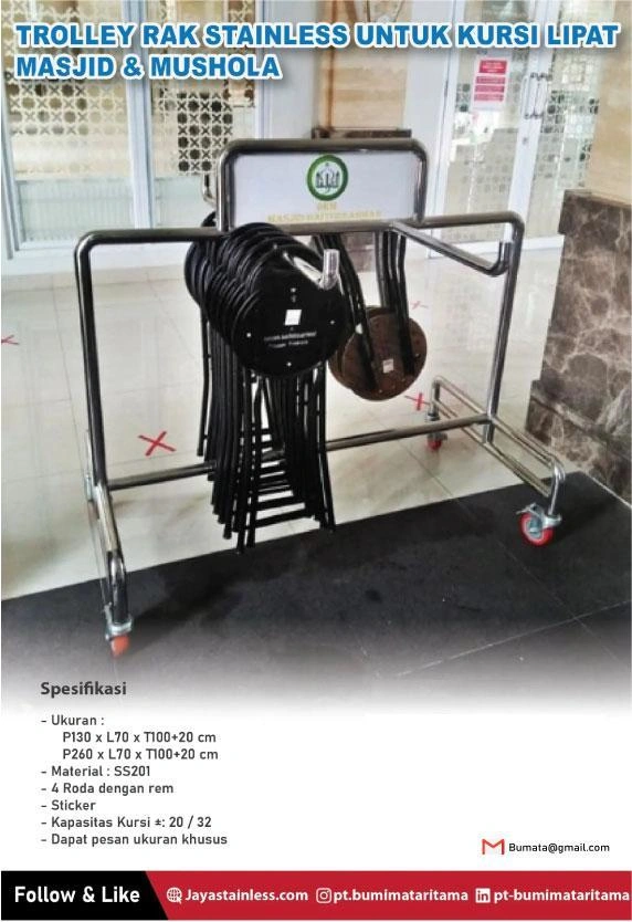Rak Stainless Beroda adalah jenis rak penyimpanan yang terbuat dari bahan stainless steel dan dilengkapi dengan roda pada bagian bawahnya. Rak ini dirancang untuk memberikan kemudahan dalam memindahkan barang-barang dengan cepat dan efisien. Karena terbuat dari stainless steel, rak ini memiliki ketahanan yang baik terhadap korosi dan karat, sehingga sangat cocok untuk digunakan di lingkungan yang lembap atau terpapar cairan, seperti di dapur, rumah sakit, atau industri.