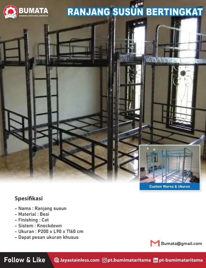 Jaya Stainless melayani order pembuatan Ranjang Susun Bertingkat (Tempat Tidur Tingkat) dengan desain custom, order cepat dengan menghubungi kami melalui email [email protected].