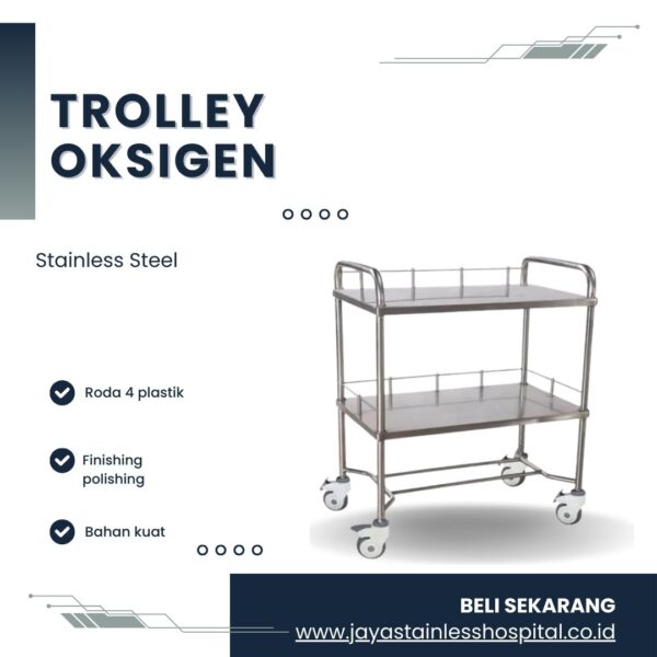• Troli oksigen stainless steel: Tahan karat dan mudah dibersihkan, cocok untuk lingkungan yang steril.