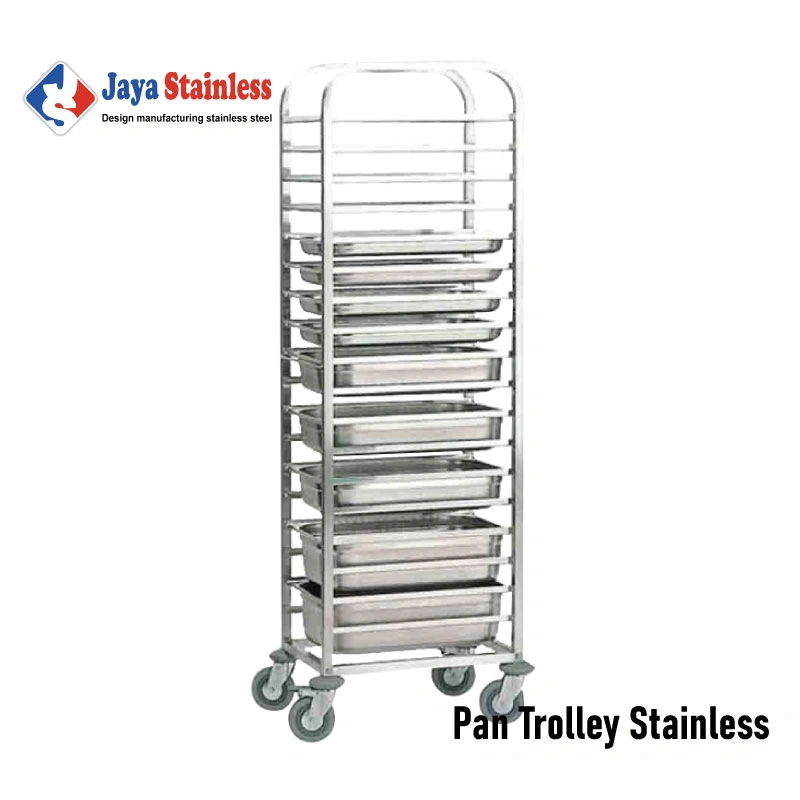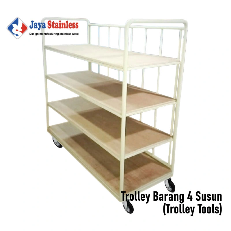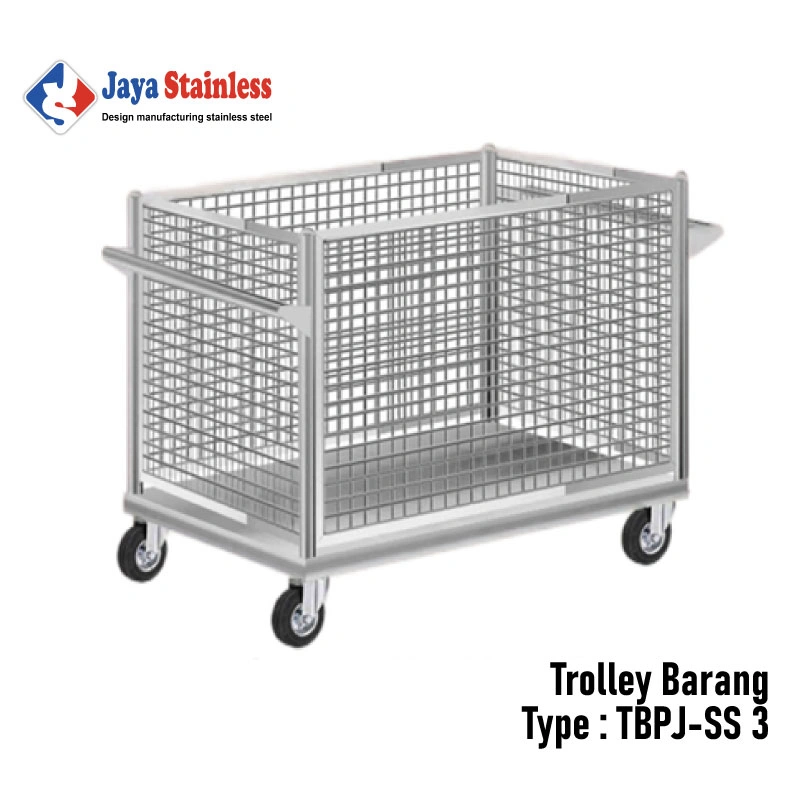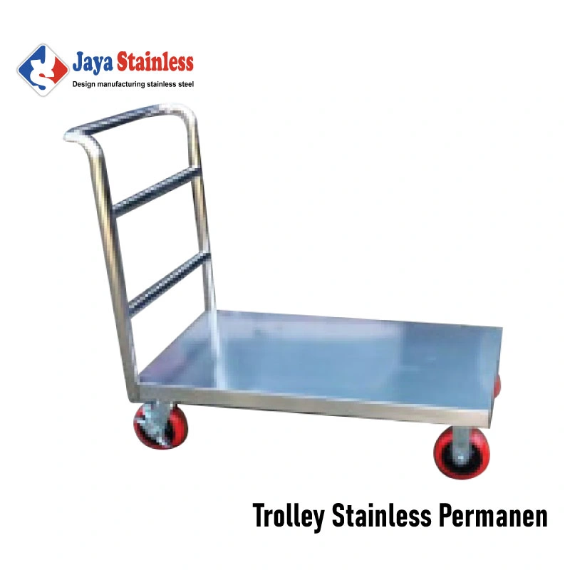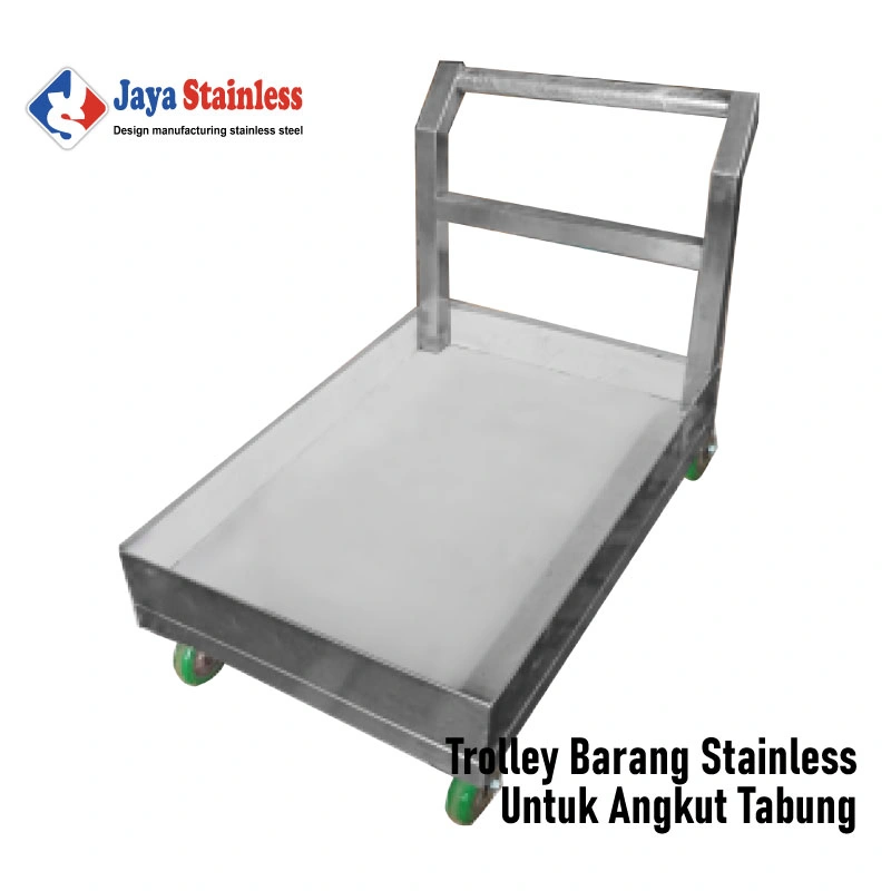 Stainless steel dipilih karena sifatnya yang tahan karat, kuat, dan mudah dibersihkan, sehingga sangat cocok digunakan di lingkungan yang membutuhkan ketahanan terhadap kelembapan, korosi, atau kondisi sanitasi yang ketat, seperti di rumah sakit, restoran, atau pabrik. Trolley stainless bisa digunakan untuk berbagai macam keperluan, seperti membawa bahan makanan, peralatan medis, atau produk industri lainnya.