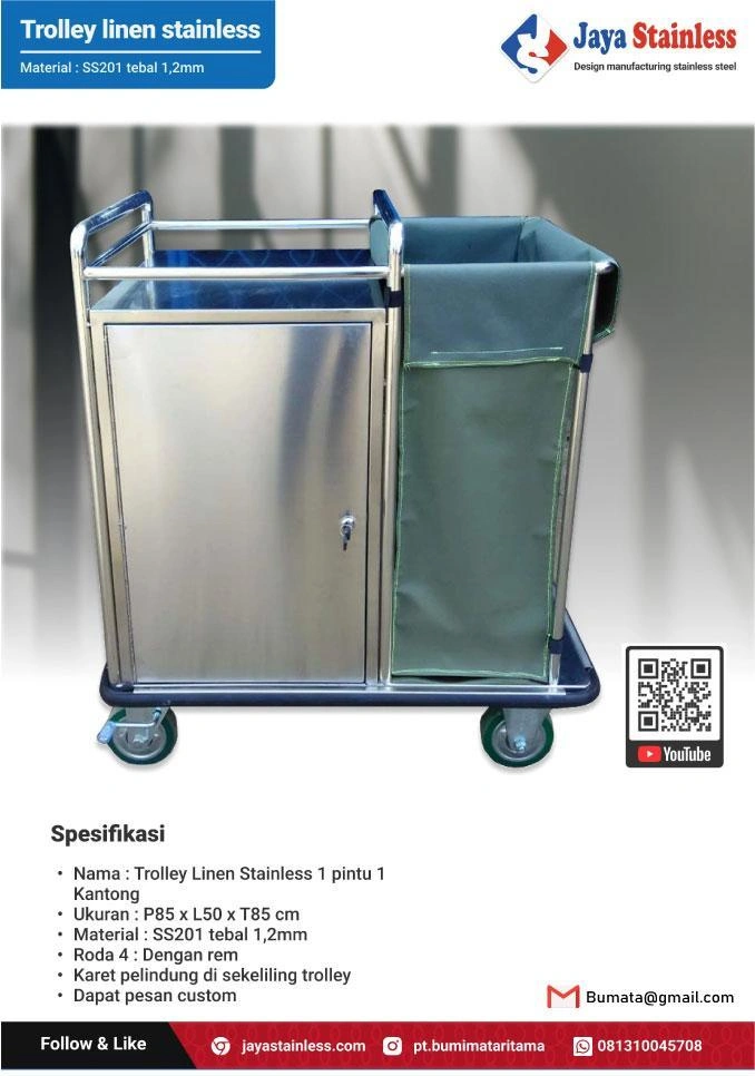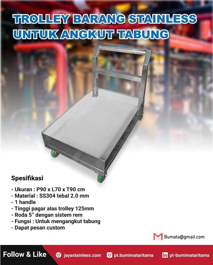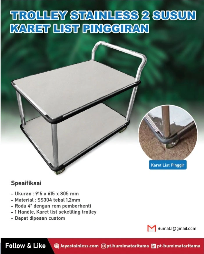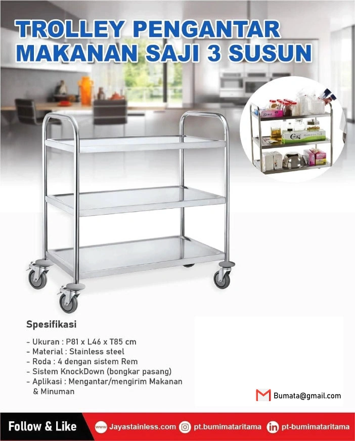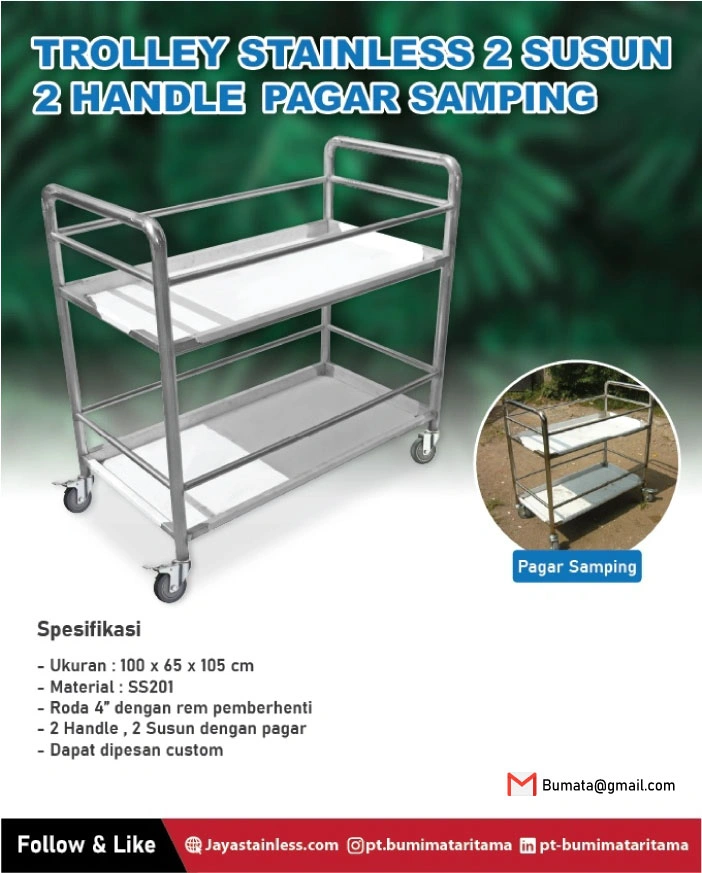 Dengan berbagai keunggulannya, tidak mengherankan jika troli stainless menjadi solusi praktis dan tahan lama untuk kebutuhan pengangkutan barang di berbagai industri. Keandalan dan kemudahan perawatannya menjadikannya pilihan yang tepat bagi banyak perusahaan yang mengutamakan efisiensi dan kebersihan.