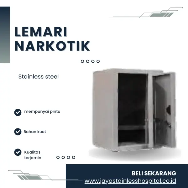 Lemari narkotik adalah jenis lemari khusus yang dirancang untuk menyimpan obat-obatan terkontrol atau narkotika secara aman dan terorganisir. Obat-obatan ini memiliki potensi penyalahgunaan yang tinggi, sehingga penyimpanan yang tepat sangat penting untuk mencegah akses yang tidak sah dan menjaga keamanan pasien.
